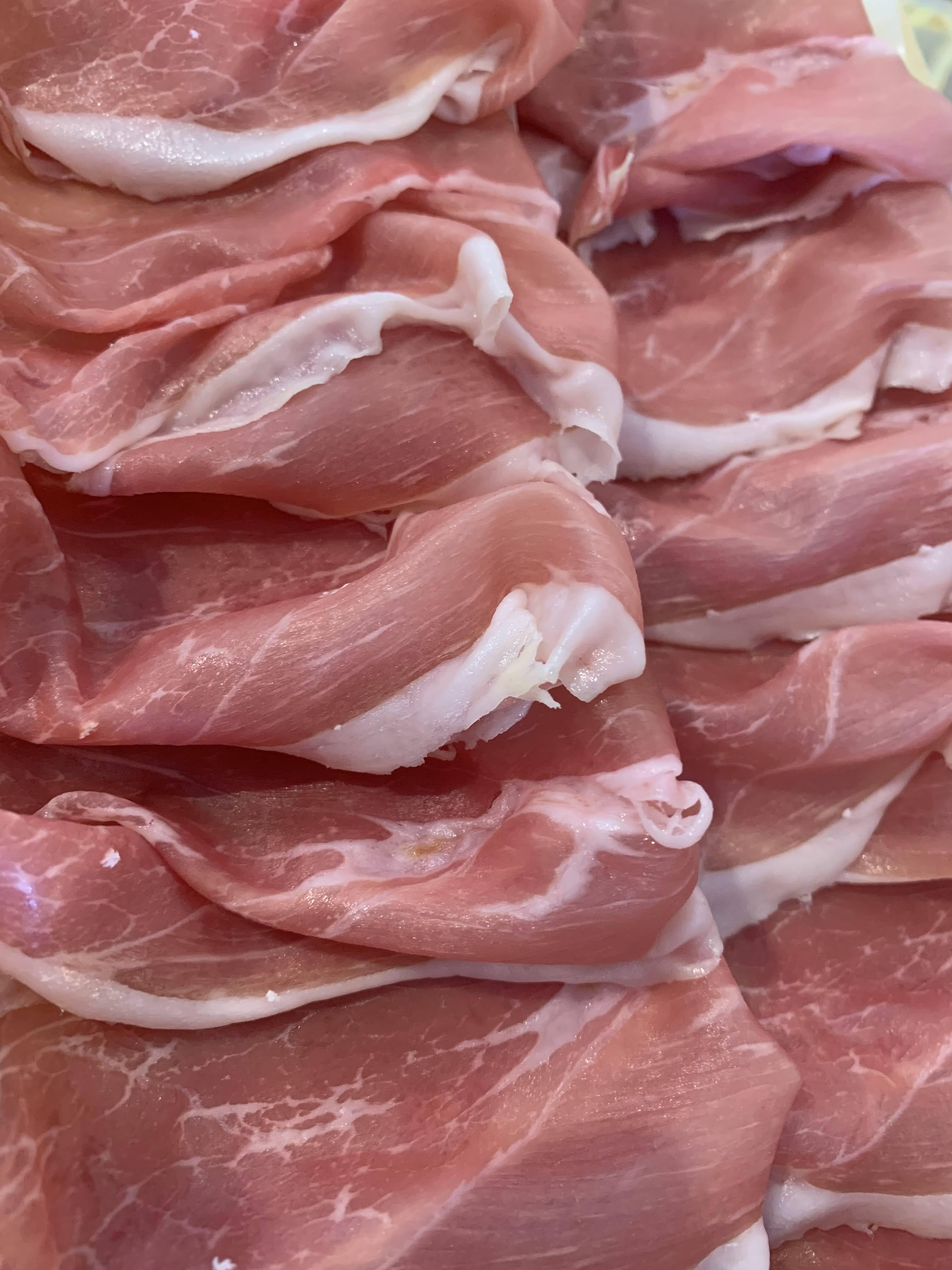 お引き取りに来られてから、イタリア最高峰「ベルケル社」の手回しスライサー(フライホイール型ヴォラーノトリビュート)で一枚づつ切り出してご提供します。香りと触感が格別です